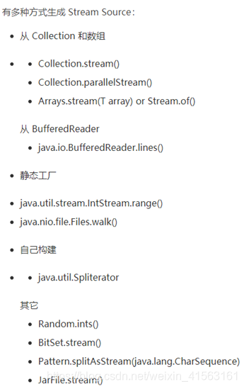 1.通过Stream接口的静态工厂方法(注意:Java8里接口可以带静态方法);